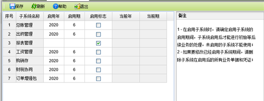 * 次使用此软件时需进行启用操作,启用的主要作用是确定购销存管理子系统的启用日期。