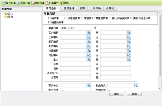 统计角度:下拉选择,包括:客户物品销售统计、物品销售统计、物品大类销售统计、客户销售统计、部门销售统计、职员销售统计、地区销售统计、仓库销售统计、仓库物品销售统计、按单统计,查询结果随统计角度选择的不同而不同,系统自动保留用户上次所选的统计角度。费用、利润、利润率三个字段只有在统计角度为客户销售统计、部门销售统计、职员销售统计、地区销售统计、按单统计时才可以显示,并且需要在查询界面的结果页签中勾选。