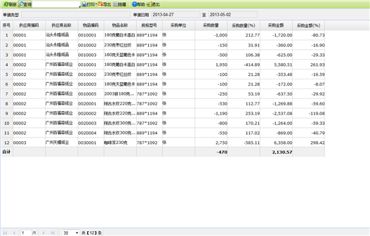 【主要功能】从供应商、部门、职员、仓库、物品等角度分析采购数量比重、采购金额比重。给用户对分析采购能力提供参考依据。