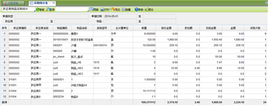【主要功能】从供应商、部门、职员、仓库、物品等角度对采购数据进行统计。