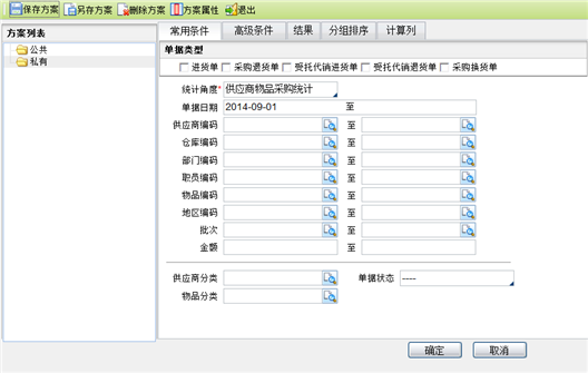 统计角度:只能选择不能手工录入,包括:供应商物品采购统计、物品采购统计、物品大类采购统计、供应商采购统计、部门采购统计、职员采购统计、地区采购统计、仓库采购统计,查询结果根据统计角度的不同而不同,比如,统计角度选择“地区采购统计”,则查询结果统计的是满足条件的地区的数量、报价金额、折扣额、无税金额、金额、采购次数。