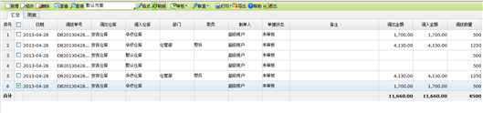 调拨单列表中提供了新增、修改、删除、查看、刷新、查询、审核、联查、打印、导入、导出、帮助等功能,可以方便的对调拨单进行查询和管理。