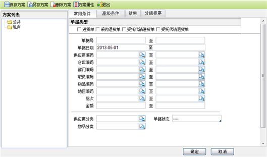 | 显示默认和常用的查询方案,可下拉选择,使查询更为便捷。 |