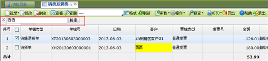 - 点击“购销存/销货/零售及退货单列表”菜单项,进入零售及退货单列表页面,如下图所示: