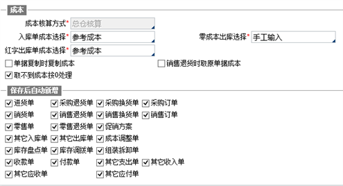 选择此项,出、入库单据审核获取不到成本时,成本设置为0,对于库存管理只关心数量不关心成本的用户,建议选择。