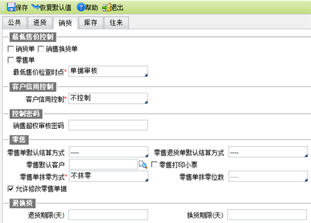 销售超权审核密码:如果设置密码,则低于* 售价、超过信用控制选择继续时,需要输入密码;如果没有设置密码,上述情况选择继续时不需要输入密码。
