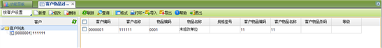 2、进入界面可选择按客户设置或按物品设置,按客户设置则界面左侧树显示客户列表,如果选择按物品设置则界面左侧树显示物品列表。