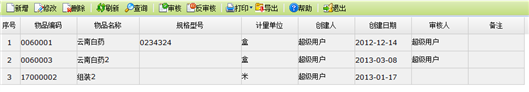 1、点击“组装件物料清单”菜单项,进入物料清单管理页面。如下图所示: