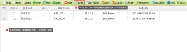 二、账套管理备份设置