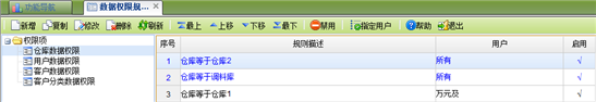 【主要功能】可设定特定用户对特定数据的使用权限。系统支持仓库、用户、客户、客户分类4种数据权限。