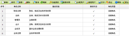 【主要功能】如果企业人员比较多,角色职责明确,可以通过角色管理,先创建角色,然后对角色授权,再把相关人员分配到该角色,并对角色进行新增、查看、删除、设置功能权限等操作,如下图所示: