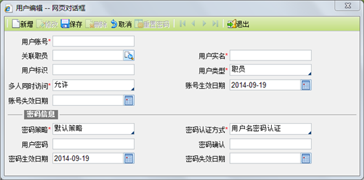 如果企业用户非常多,为了方便创建用户账号,系统提供了提量新增功能。使用此功能之前,需要先创建职员档案。