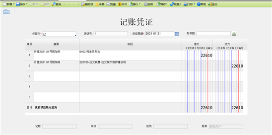 如是,则转入凭证界面,按计提附加税设置页面计算显示的附加税金额生成凭证分录;