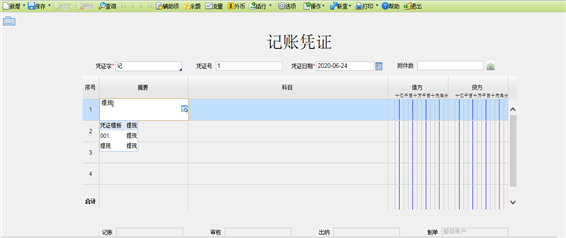 【主要功能】根据用户设置的凭证字,录入凭证信息。