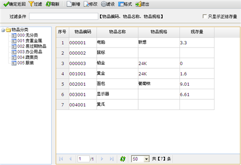 物品辅助参照页面