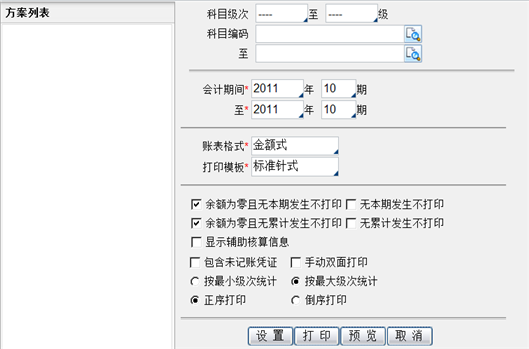 - 科目级次:以输入打印科目的级次。