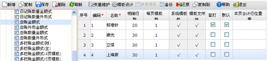 【* 步】点击【功能导航/我的系统/设置中心/打印设置/模板管理】,选择总账账表,打开页面如下图