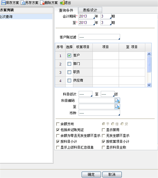 - 核算项目:选择所需查询的具体客户代码或范围。