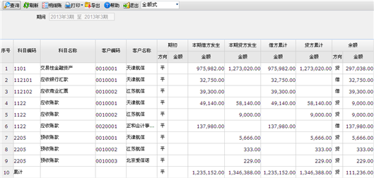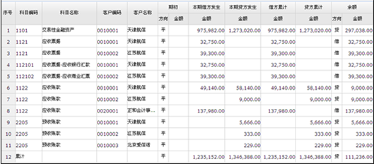客户往来余额表查询页面