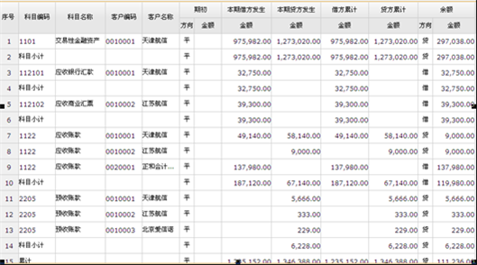 客户往来余额表页面