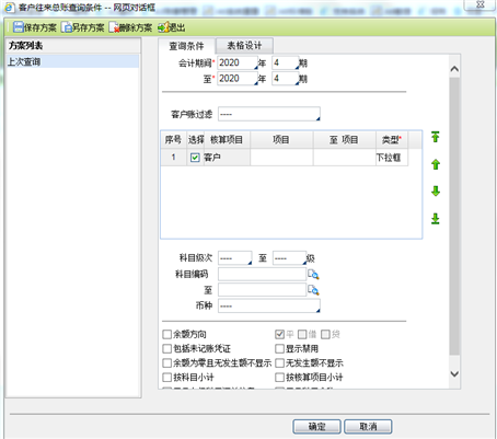 - 核算项目:选择所需查询的具体客户代码或范围。