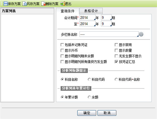 多栏账查询条件设置页面