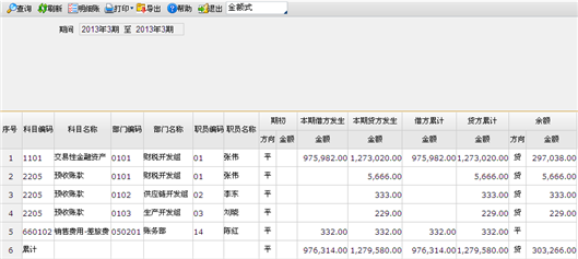 - 选择明细行,点击〖明细账〗按钮,可联查辅助项目明细账。