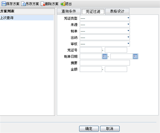 【第二步】在查询条件页面,通过“凭证过滤”页签,可设置要查询的凭证类型、凭证来源、制单、出纳、审核、凭证号、制单日期、摘要、金额进行详细筛选查询。若勾选了“月度综合明细账”,则科目下拉选择中只显示一级科目。如下图: