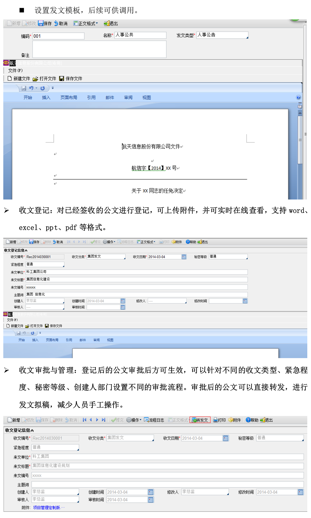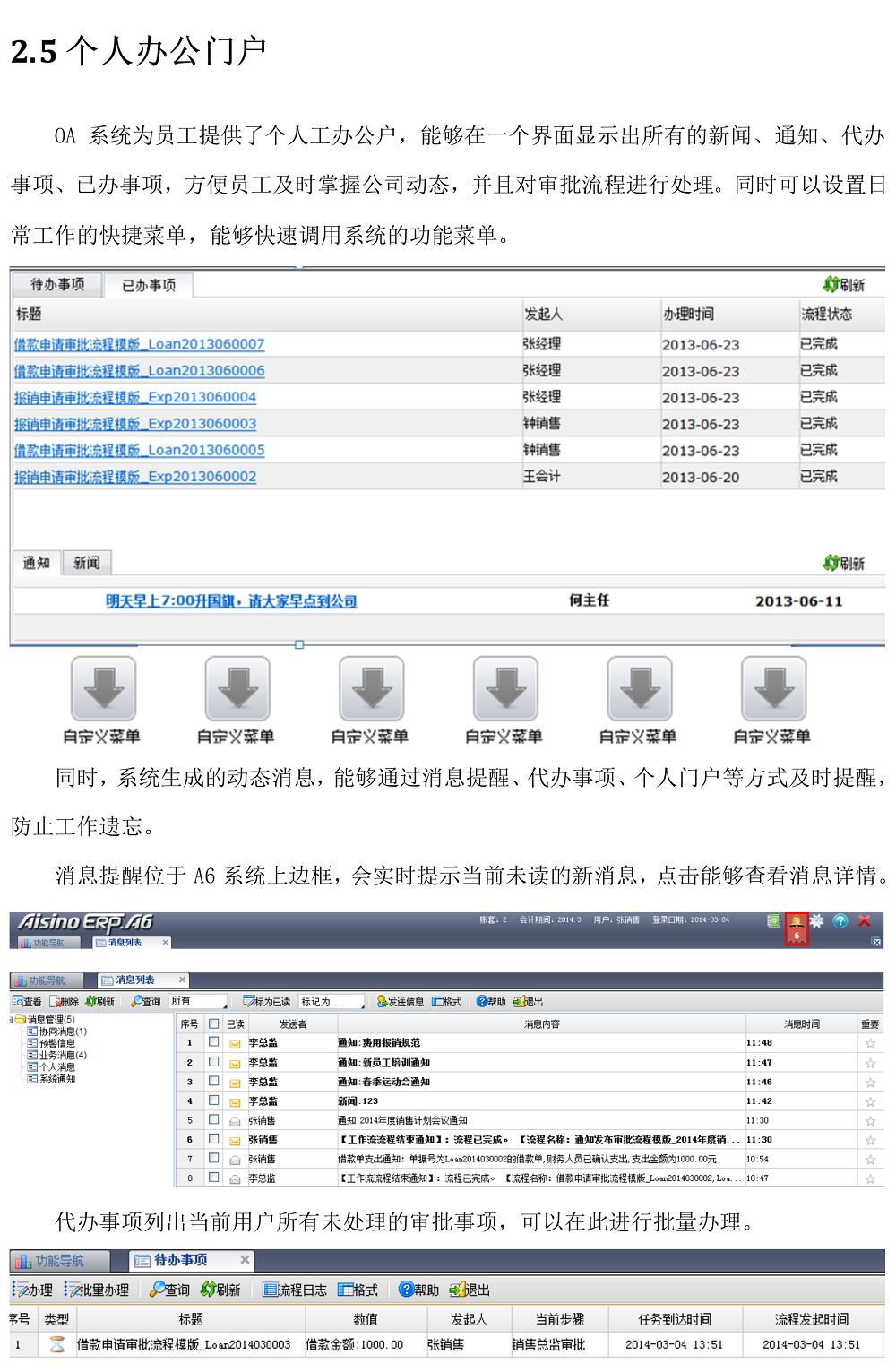 航天信息ERP A6企业管理软件 办公OA子系统功能介绍及操作说明