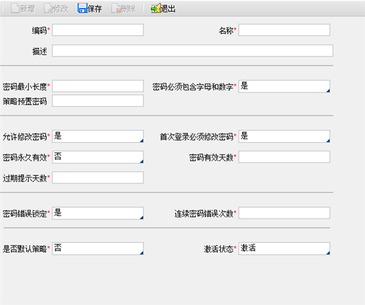【菜单路径】功能导航/系统/权限管理/密码策略