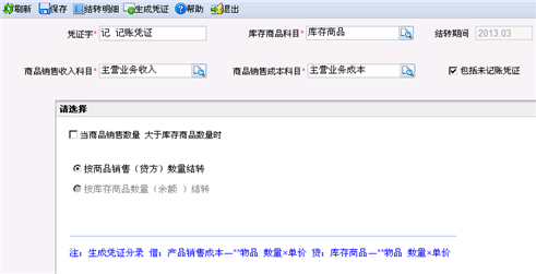 功能导航/财务/总账管理/转账/全月平均法销售成本结转