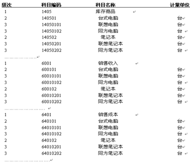 【第二步】在库存、收入、成本科目处录入会计科目,要求此处三个科目具有相同的结构明细,库存、收入科目必须带数量核算,成本可带可不带。三科目可以为外币科目,库存科目和收入科目级次必须相同,成本科目级次是其级次的子集。设置如下: