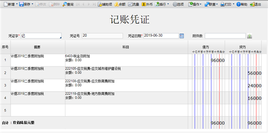 1、 凭证摘要:默认为“计提[期间]附加税”,可修改