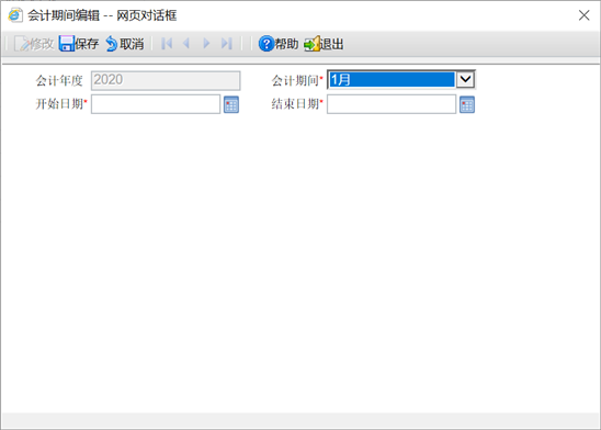 【第三步】在[开始日期]处选择会计期间开始日期,系统则会根据[开始日期]自动给出[结束日期]。