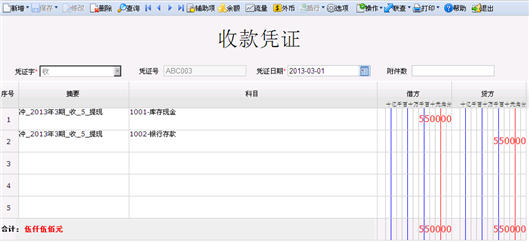 在凭证管理页面,选择要修改的凭证,点击〖修改〗按钮,弹出凭证修改页面。