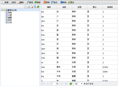 计量单位管理页面,如下图所示。