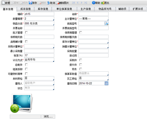 功能:增加、修改、删除、复制物品档案,设置相关信息。
