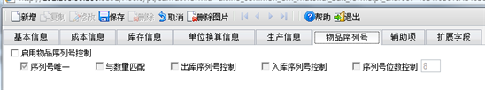 出库序列号控制 | 即要求当前物品出库时必须指定序号,当“与数量匹配”也选择上时,出库指定的序号必须是已经存在的序号。 |