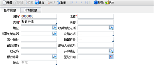 助记码 | 助记码可以手工录入,也可以由系统自动生成,助记码可以帮助用户在录入客户资料时,快速定位到所需客户。 |
