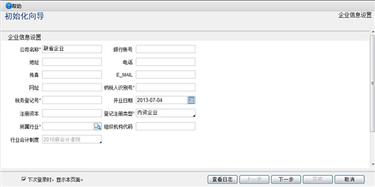 【* 步】设置企业信息,设置企业名称、银行账号等企业基本信息,点击“下一步”按钮。