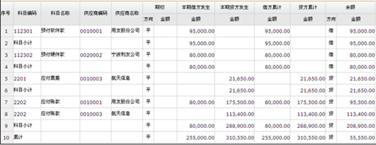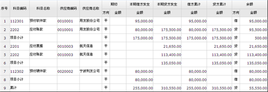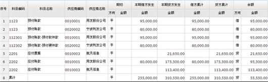 功能导航/财务/总账管理/往来管理/供应商往来总账