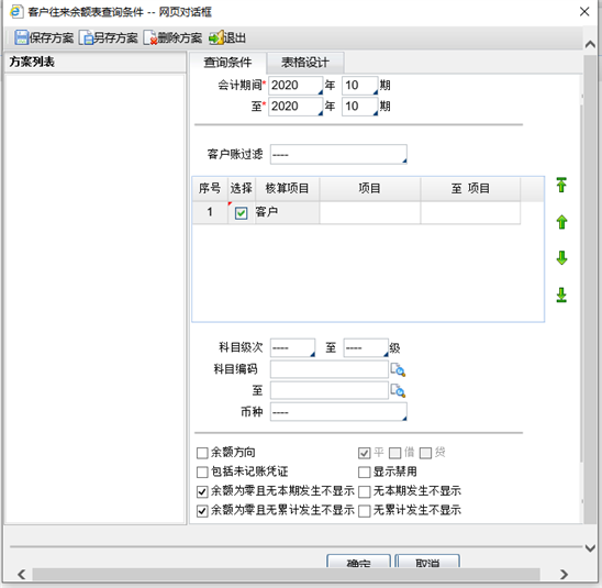 客户往来余额表查询页面