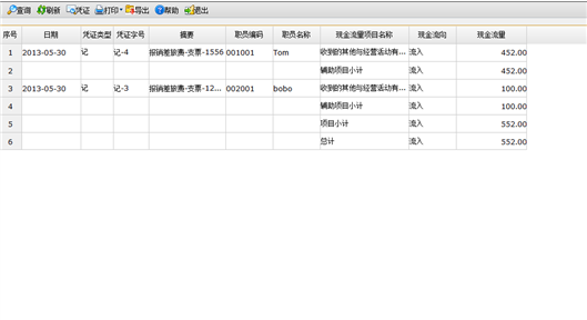辅助项目现金流量统计表查询列表页面