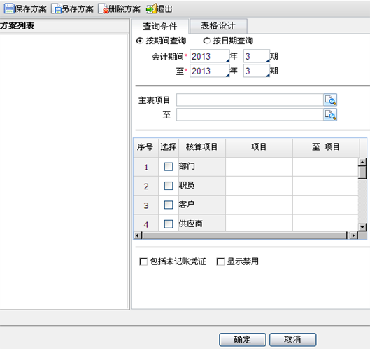 航天A6软件查询辅助项目现金流量统计表操作说明: