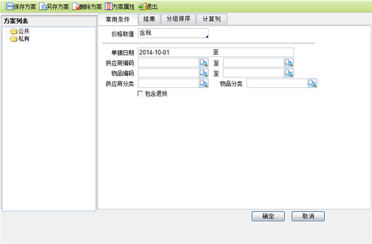 查询条件中的“价格取值”:如上图方框中的“价格取值”选择“不含税”时,查询结果列表中的相关价格为不含税价显示。选择“含税”时,查询结果中的*