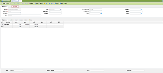 经手人:手工或参照录入,参照职员档案中未禁用记录;经手人部门有值时,参照对应部门职员(可手工录入其它部门的职员);录入职员时如果经手人部门为空则将职员所属部门带入经手人部门中。