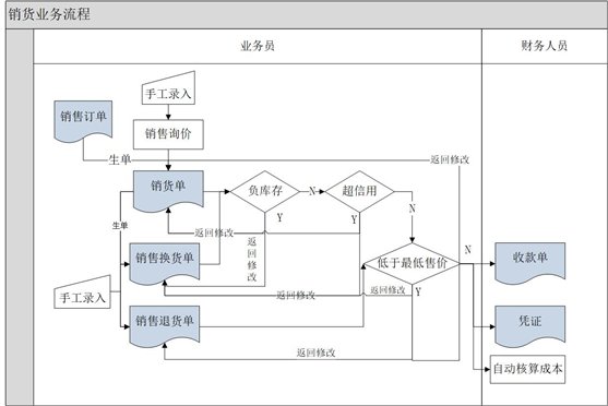 - 手工填制销货单或者参照销售订单生成销货单,录入客户、物品、数量系统进行销售询价,取得销售价格。如果是销售现结可以在销货单录入现结金额。