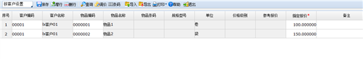 根据客户及客户级别设定物品的指定报价,系统支持按客户分类或客户两种设置方式。同时系统提供手工录入和导入客户价格表两种方式。