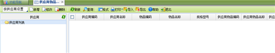 2、进入界面可选择按供应商设置或按物品设置,按供应商设置则界面左侧树显示供应商列表,如果选择按物品设置则界面左侧树显示物品列表。