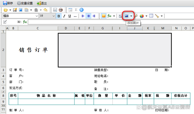 ②,选中“销售订单”旁的单元格,点击工具栏中的“添加图片”